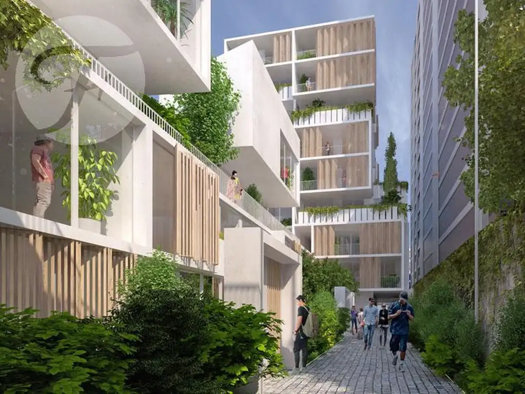 Uno de los aspectos mas innovadores del proyecto es el de concebir parte de su arquitectura y paisaje como un bien común que permita a los habitantes de la manzana y de la ciudad mejorar sus condiciones de vida y hábitat. Esta estrategia reside básicamente en generar espacios verdes en cuatro niveles: 1) en el pasaje de planta baja, 2) en el corredor del segundo piso, 3) en los balcones de los departamentos y 4) en las terrazas de los edificios.