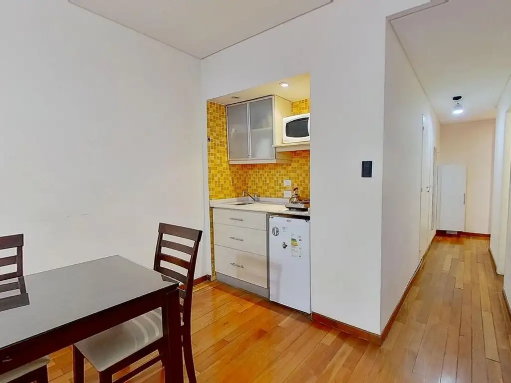 Monoambiente amplio con armario empotrado en pasillo, cuenta con cocina refaccionada tipo kitchenette, funcional y equipada con anafe eléctrico, muebles bajo y sobre mesada, e incluye heladera bajo mesada.