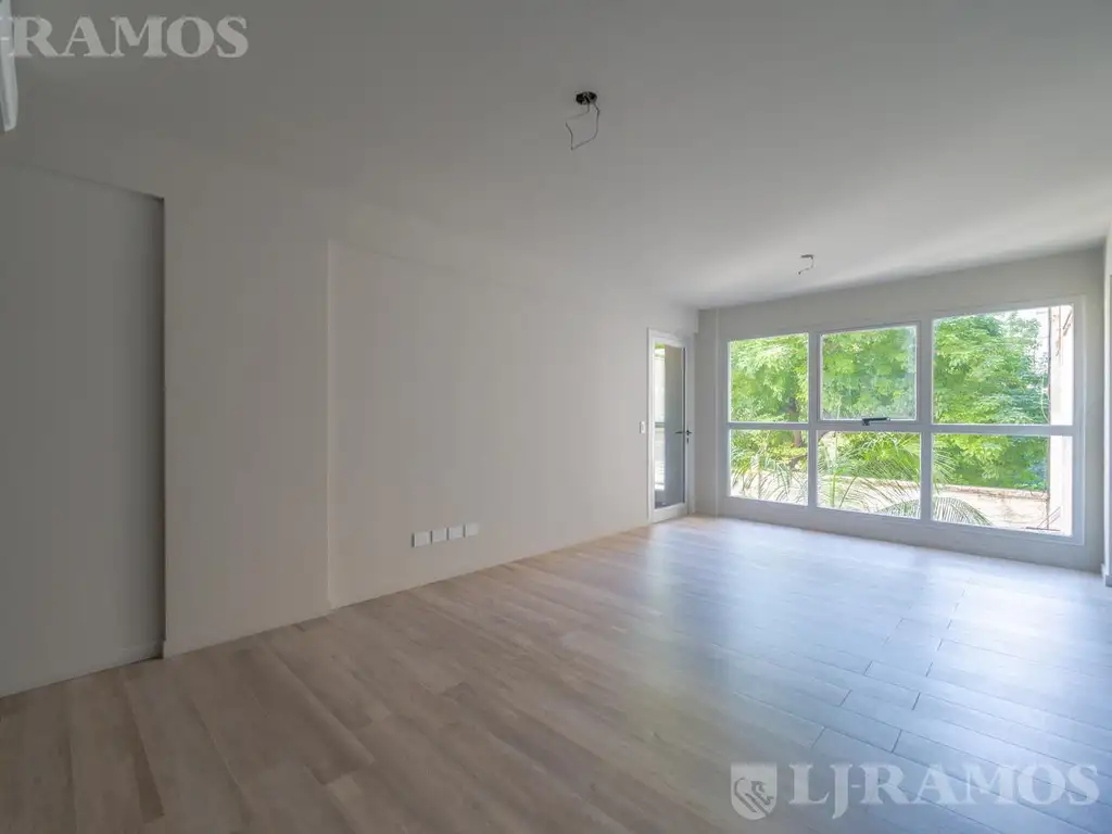 Pisos de porcelanato, ventanas de aluminio anodizado con doble vidrio hermético, mesadas de Silestone, anafe y horno eléctricos, puertas de placares y muebles de cocina bajo mesada y alacenas completos.