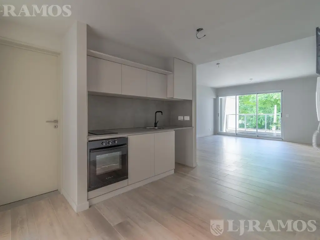 Pisos de porcelanato, ventanas de aluminio anodizado con doble vidrio hermético, mesadas de Silestone, anafe y horno eléctricos, puertas de placares y muebles de cocina bajo mesada y alacenas completos.