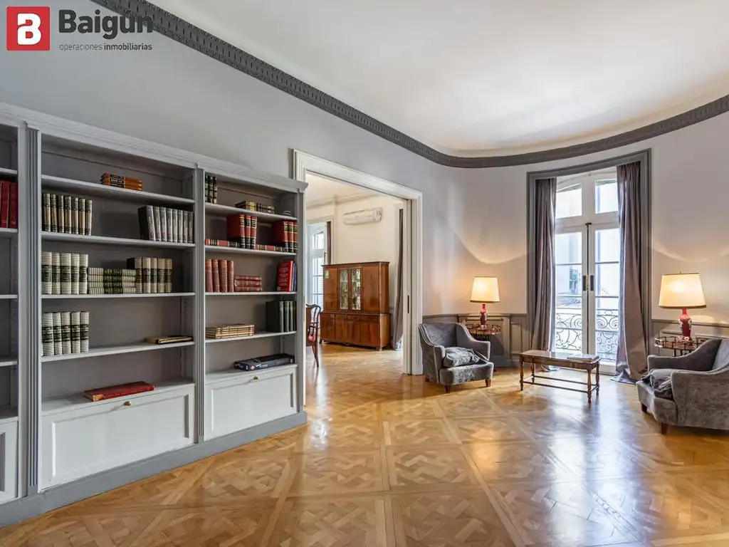 En edificio de estilo, con imponente acceso sobre la avenida, se encuentra este departamento tipo casa de seis dormitorios, reciclado recientemente con todos sus detalles auténticos conservados.