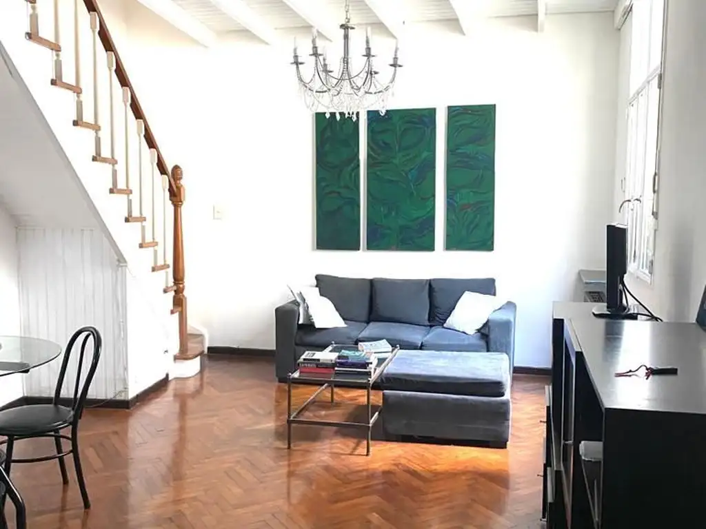 Departamento tipo loft de 2 ambientes y medio, al contrafrente. 2º piso por escalera. Superficie cubierta y total de 67m2. Un dormitorio en suite, dos baños (uno completo y un toilette). Living-comedor, cocina kitchenette.