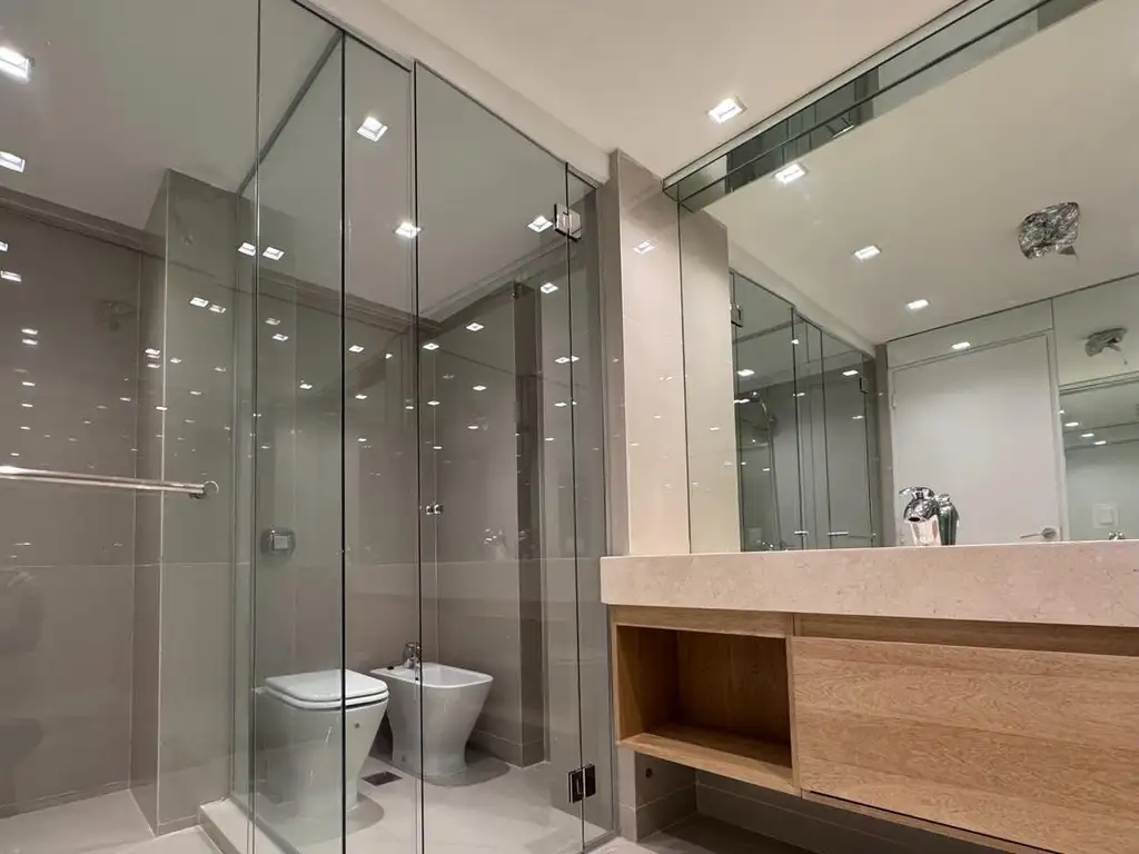 El edificio cuenta con amenities: piscina y solarium, importante sum equipado para eventos con cocina y baños, parrilla, sauna. Personal de seguridad.