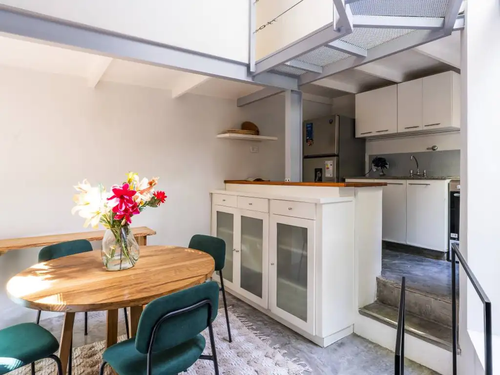 Cocina abierta con salida a terraza. Living comedor con toilette de recepción. Dos dormitorios que comparten un baño completo.