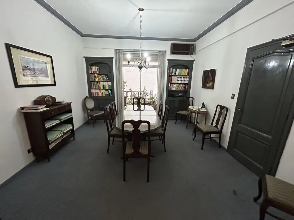 El Departamento, que se encuentra en un edificio de gran categoría y excelentemente conservado, tiene doble entrada. Por una se accede a un gran hall de entrada de 3,50x2,30 y por la otra entrada se puede acceder a un ambiente de 6,30x2,3 que hoy se encuentra una kitchenette que puede ser una gran cocina. La propiedad cuenta además con: