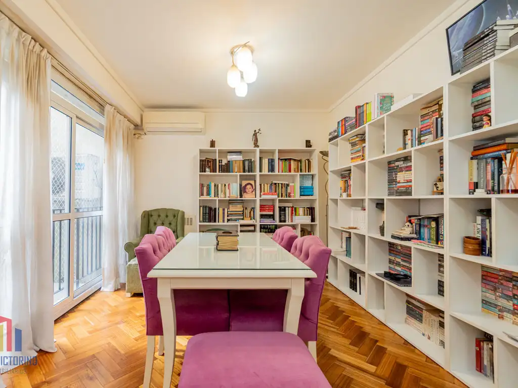 Del ingreso principal se accede también al living comedor muy amplio con balcón francés que ventila al pulmón del edificio. Pisos de parquet