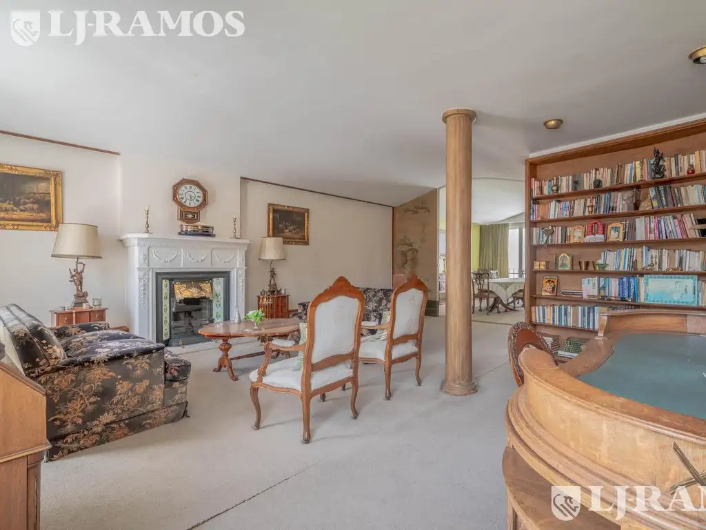 Recepción de living con chimenea con salida a balcón. Comedor separado y escritorio . Ambientes muy amplios llenos de luz natural .Toilette.