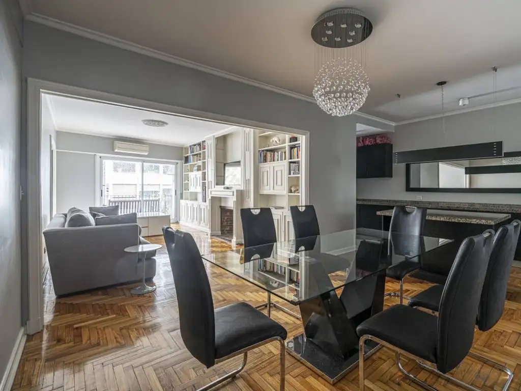 Hall, Living con balcón y chimenea, playroom en la ochava, comedor y cocina con isla integrada.