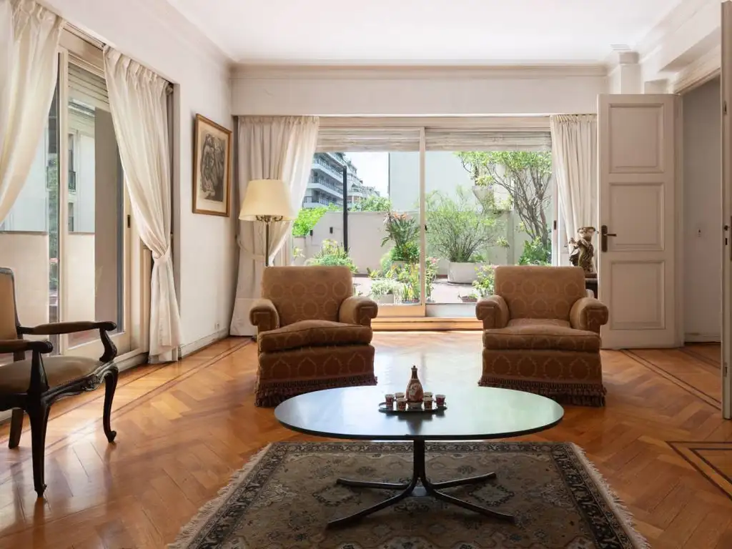 Torre con frente y contrafrente, destacados patios y vista a los jardines del Jockey Club.