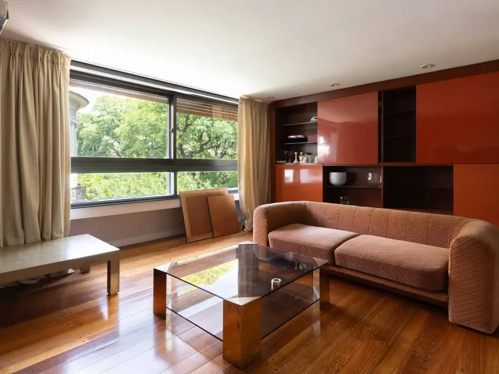 Recepción apaisada con salida a balcón corrido sobre la calle Posadas.