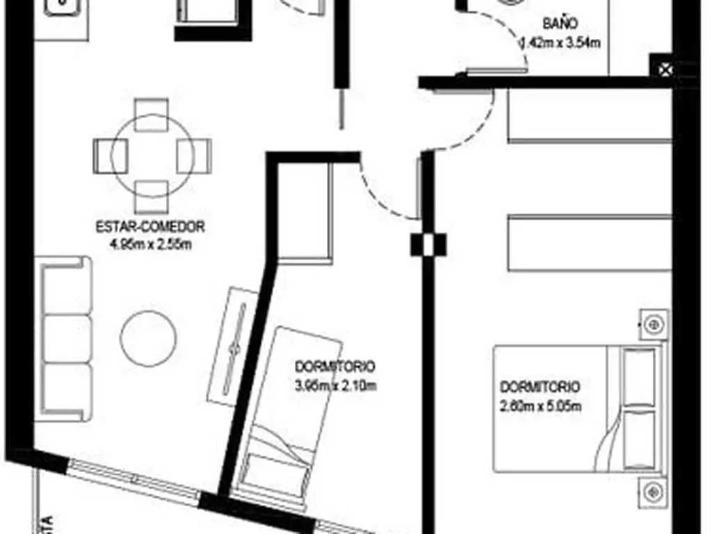 Descripción: Al ingresar a la unidad nos encontramos con el living-comedor con cocina integrada y salida al balcón. Baño completo. En el intimo dos dormitorios.