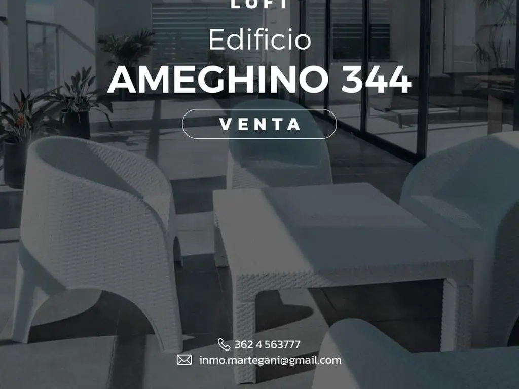 -Departamento ubicado en AMEGHINO 344, tipo LOFT con parrilla, horno, cocina con gran isla, baño y una GRAN terraza.