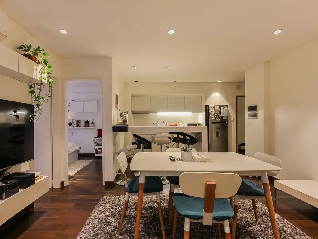 A la unidad se ingresa por la cocina integrada al comedor por su barra desayunadora.