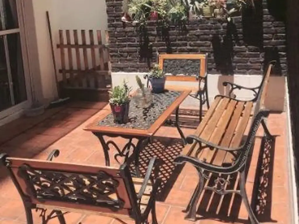 Apto credito! Departamento de 3 ambientes + dependencia, lateral. 1º piso. Superficie total de 100m², cubierta de 75m² y descubierta de 25m². Tres dormitorios, dos baños incluyendo el de la dependencia de servicio. Living-comedor, cocina integrada. Patio y parrilla. Dependencia de servicio. Baulera. Muy buen estado, escasamente luminoso. Pisos de parquet. El edificio cuenta con seguridad nocturna y dos encargados. Calefacción central, tanto para calefaccionar por medio de radiadores, como para el agua caliente.