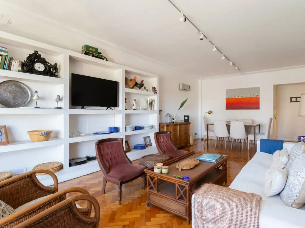 Ambientes muy luminosos. Living comedor con salida a "balcón frances" con vistas hacia la Av. Cerrito y el Hotel Four Seasons.
