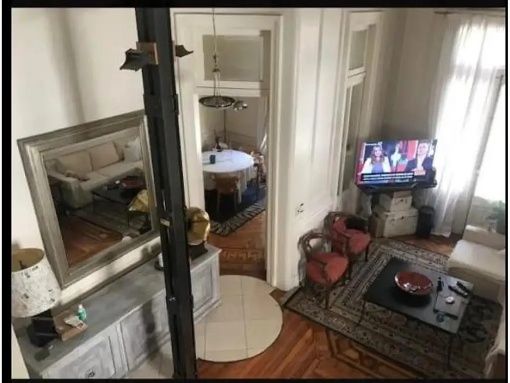 El departamento se ubica en un piso medio-bajo, cuenta con piso antiguo y entrada al living, con cocina incorporada con comedor aparte, hall distribuidor a toilette, baño completo con ducha, 2 dormitorios y un estudio para escritorio con vista al living apto para trabaja y / o estudiar.
