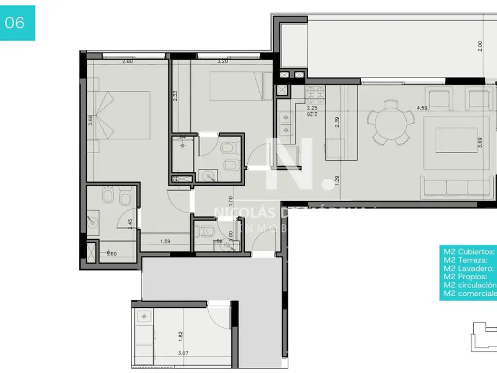 La unidad de la publicación es la 106, se trata de un apartamento esquinero con living comedor, amplio balcón envolvente con parrillero propio, cocina americana, 2 dormitorios con 2 baños (principal en suite), baño de visitas y terraza lavadero muy amplia. Cochera para un auto con baulera y previsión para cargador para autos eléctricos. Cuenta con excelente orientación solar para disfrutar todo el año.