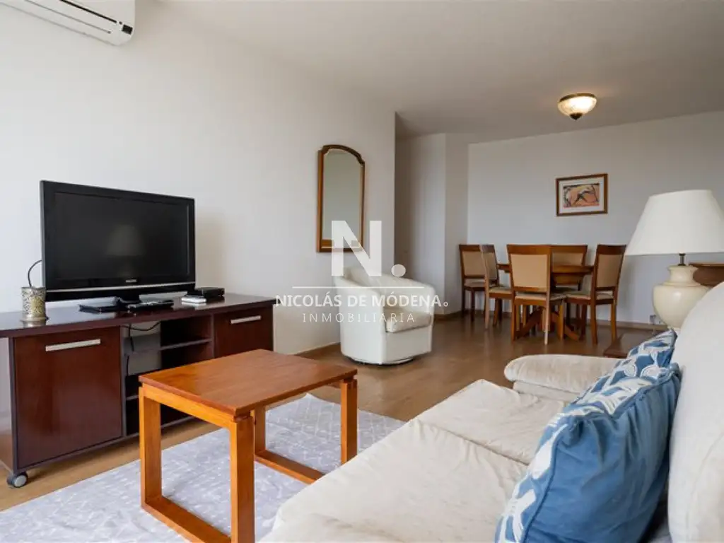 El diseño interior se centra en un concepto de ambiente integrado, donde la cocina definida se fusiona armoniosamente con un amplio living comedor, creando un espacio luminoso y acogedor para la convivencia y el entretenimiento. La cocina está equipada con anafe, microondas, lavarropas y heladera con freezer, complementados por amplios placares en la cocina y los dormitorios, campana extractora, horno y bidet, elementos que confieren funcionalidad y estilo a la unidad. Además, el sistema de aire acondicionado y la televisión aseguran el máximo confort en cualquier momento del día.