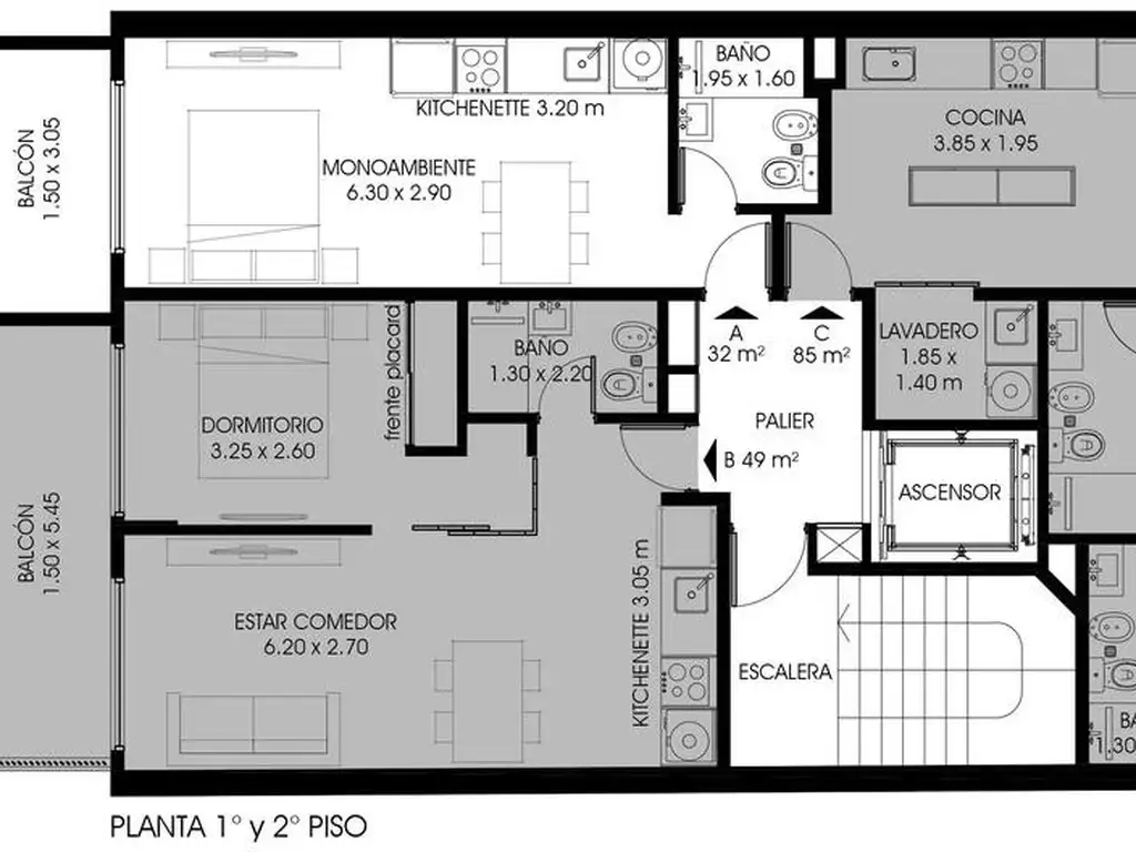 Tipología: Departamento monoambiente.