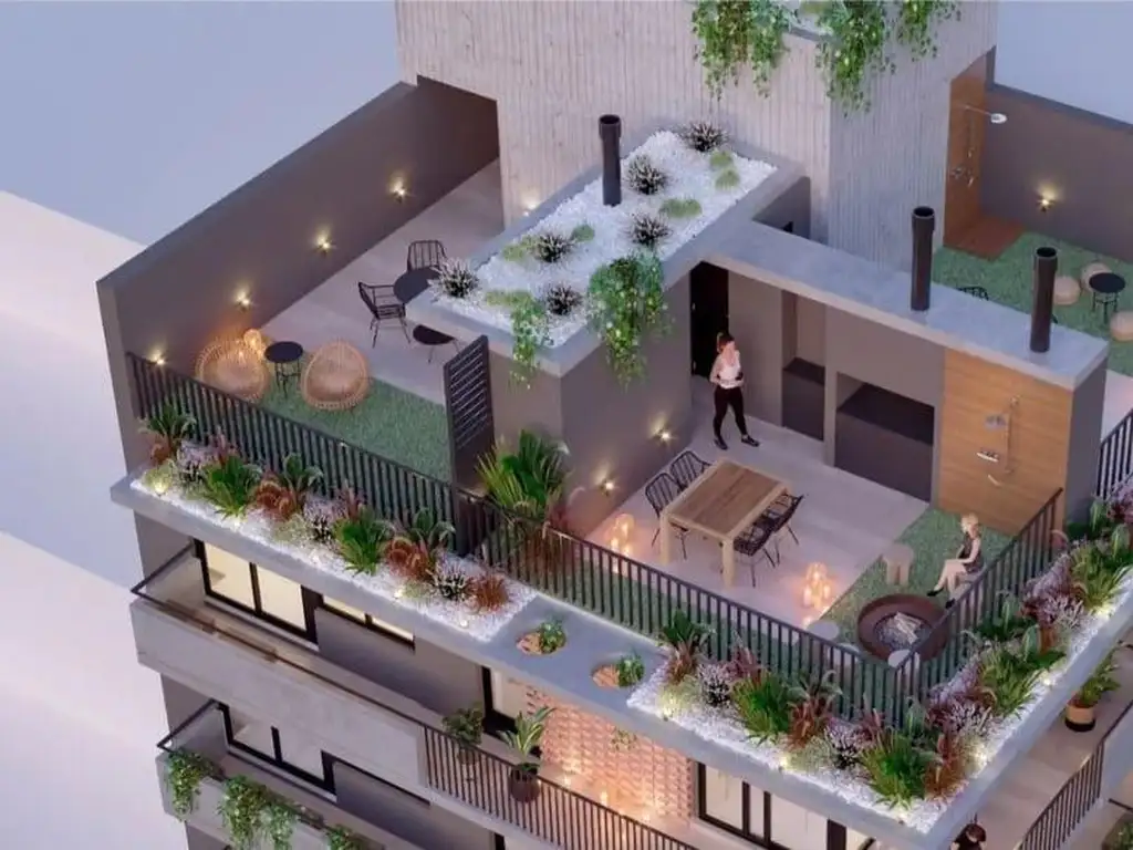 Los departamentos se entregaran con pisos de primera calidad, cocina con alacena aérea bajo mesada, mesada de marmol granito, artefacto de cocina a gas y calefón.