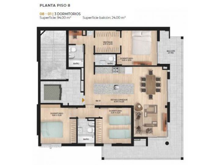 Departamento 3 dorm (08-01) con Cochera, c/Amenities - 9 de Julio 500 - Bo. Martin