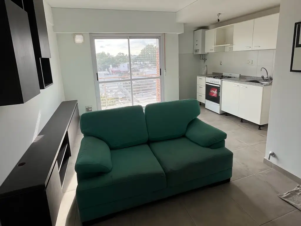 Al ingresar se encuentra un amplio living-comedor con cocina integrada y salida a un balcon luminoso.