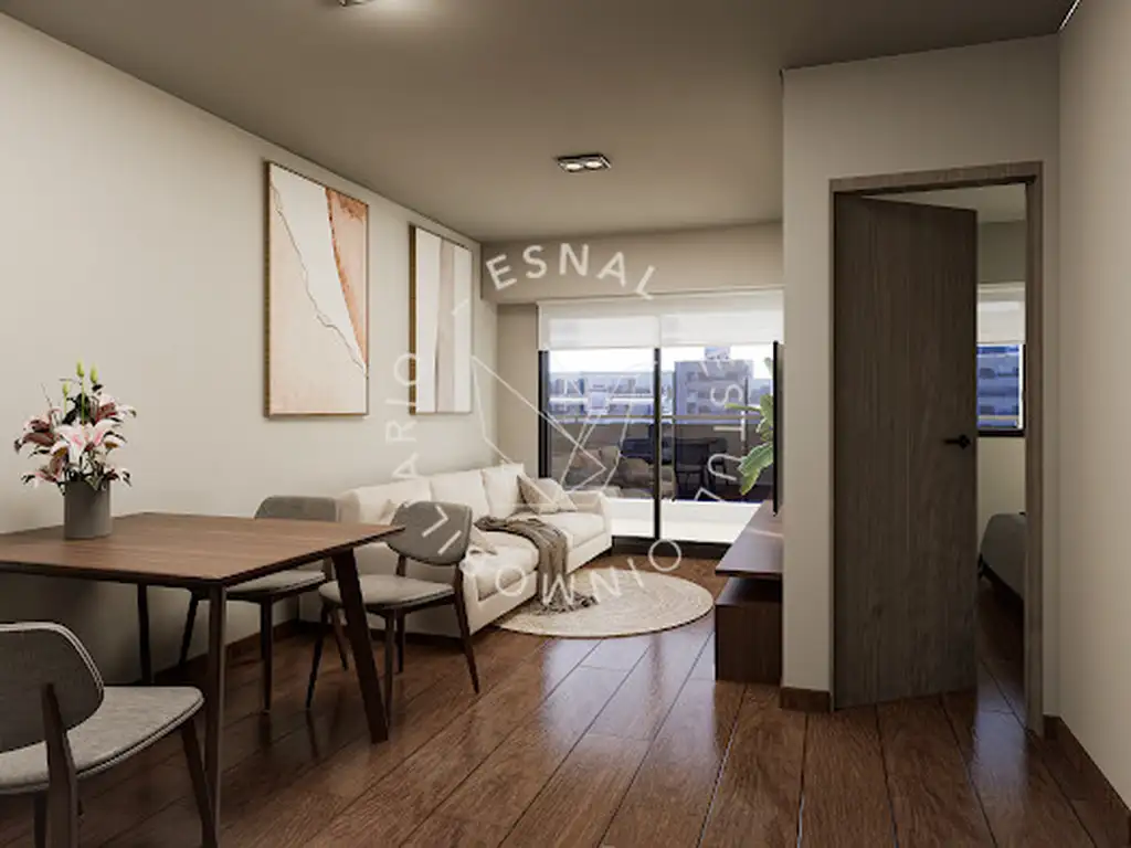 Departamento de 1 dormitorio, cuenta con living comedor con cocina integrada, balcon, baño completo y dormitorio con placard. Unidad con disposición interna, orientación ESTE.