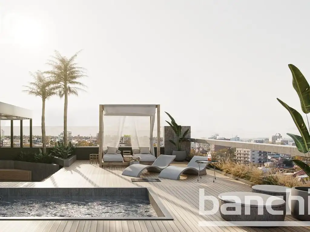 Terraza equipada con piscina para disfrutar de las tardes de sol, acompañada de un solárium, lugar de ocio, para todos. Completan la terraza el quincho cubierto y fogonero, para las reuniones sociales.