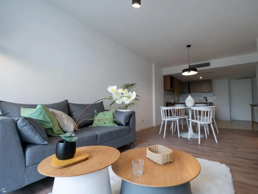 Las unidades del edificio se distinguen por sus terminaciones de alta calidad: pisos flotantes de madera importada de 10 mm y porcelanatos de primera categoría en cocinas y baños. La cocina está totalmente equipada con muebles de alacena y bajo mesada de la prestigiosa marca Johnson. Los baños cuentan con sanitarios de The Gap Roca y griferías de marcas de renombre, asegurando tanto funcionalidad como elegancia.
