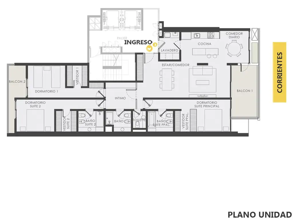 Vestidor Suite Ppal. : 1.90m x 1.90m