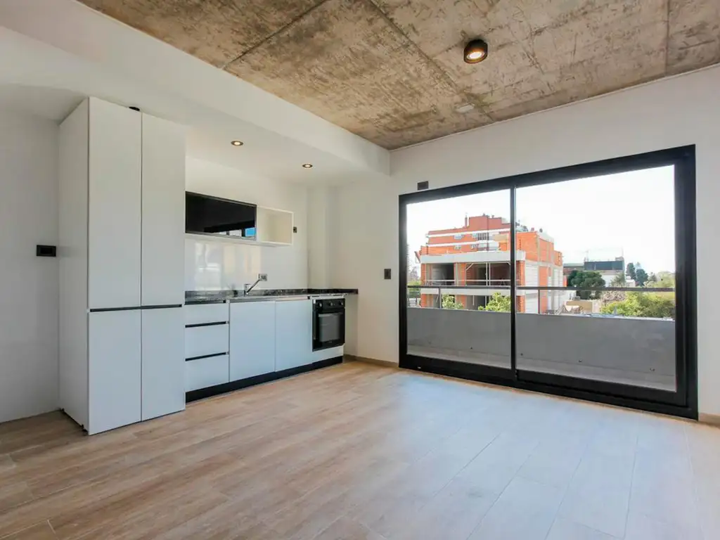 -Ambiente de 4.05x9.00. (Living con cocina integrada. Muebles en alto y bajo mesada. Conexión para lavarropas. Cocina eléctrica. Termotanque electrico.)