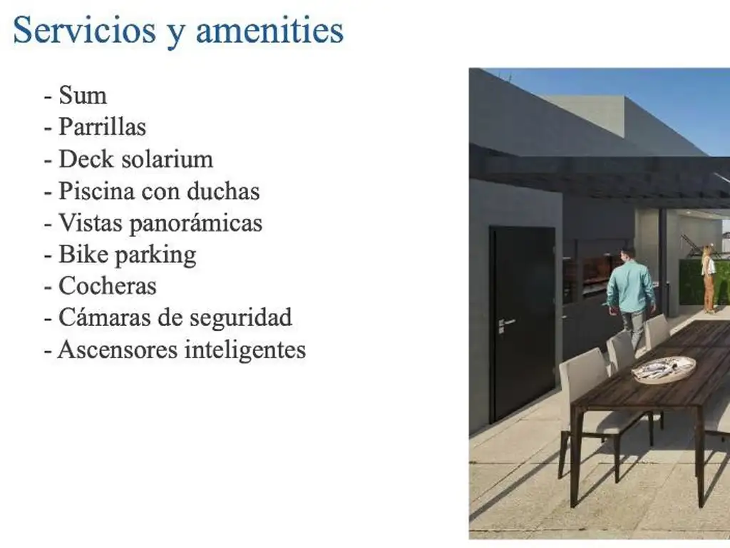 Full amenities:- Sum- Parrillas- Deck solarium- Piscina con duchas- Vistas panorámicas- Grupo electrógeno- Cámaras de seguridad- Ascensores inteligentes