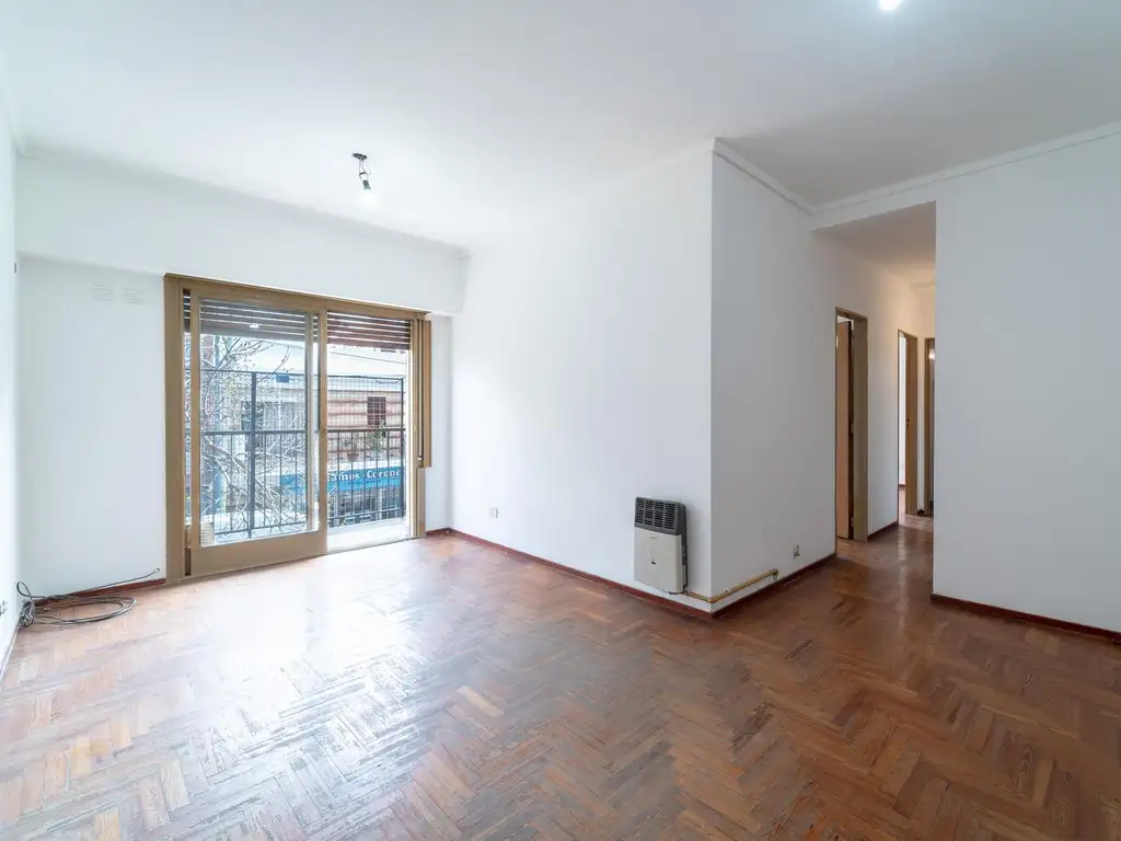 Luminoso living comedor, pisos de parquet en muy buen estado. Salida al balcón.