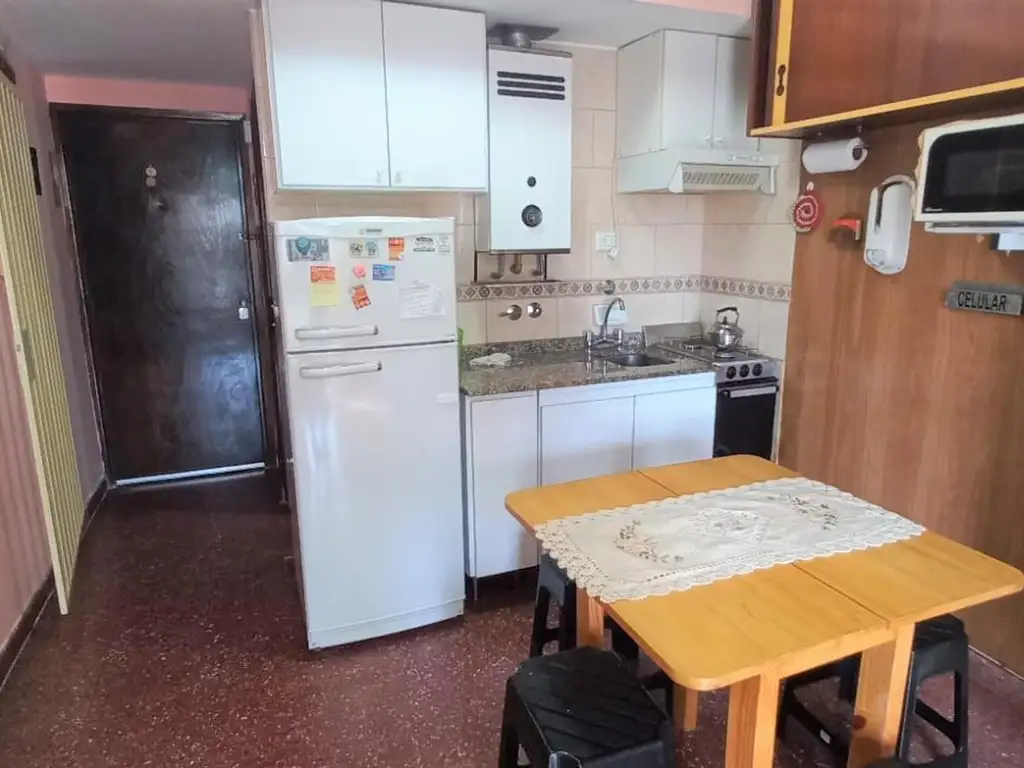 Departamento monoambiente ubicado en 2° piso por escalera, sobre calle Costanera frente al mar y a 1 cuadra del Centro Comercial de San Bernardo, posee cocina con dormitorio integrado y baño.