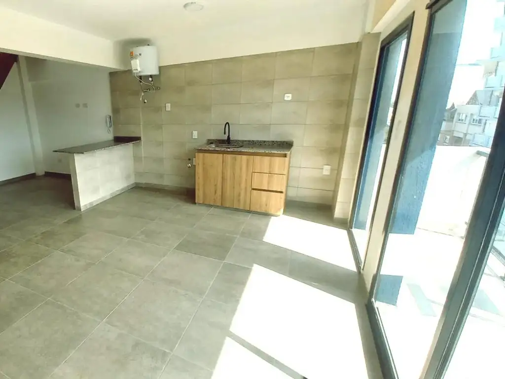 La unidad es a estrenar ubicada en el 5° piso por ascensor, en P.B cuenta con amplia cocina-comedor, baño completo y dormitorio, en la P.A nos encontramos con un quincho exclusivo de la unidad con parrilla, lavadero y también balcón al frente.