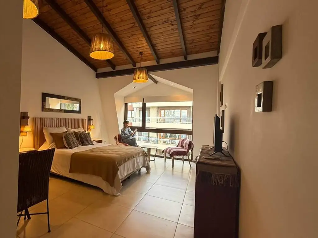 El departamento se destaca por su techo alto con terminaciones en madera, que aporta calidez y amplitud al ambiente, junto a una estética moderna y funcional.