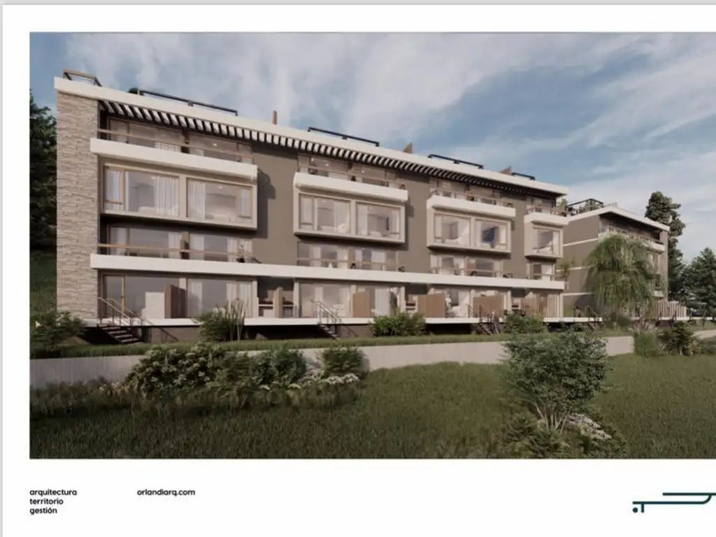 Tipo de construcción: tradicional. Terminaciones de madera, aberturas de PVC símil madera y termo paneles DVH. Los balcones son construidos con madera y vidrios blindex laminados. Revestimiento exterior con piedra.