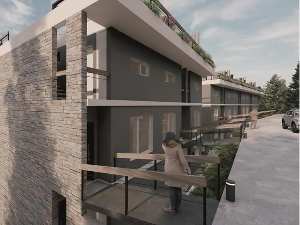 Departamento duplex con vista al lago Nahuel Huapi, Este dúplex en planta baja con vista al lago Nahuel Huapi se encuentra en el barrio Las Chacras, una zona en pleno desarrollo, ideal para quien busca disfrutar de la naturaleza y tranquilidad, a solo 15 minutos del centro de la ciudad y a 5 minutos del aeropuerto. Características: - Superficie total: 61,54 m²- Superficie cubierta: 51,82 m² - Superficie semicubierta (deck): 4,44 m² - Superficie descubierta (jardín): 17,59 m² Distribución: - Planta Alta: - 1 habitación - Baño completo con bañera - Planta Baja: - Cocina integrada - Living-comedor - Toilette - Deck con parrilla de 4,44 m² - Jardín de 17,59 m² Calidad Constructiva: En cuanto a los materiales constructivos, las fachadas del edificio están compuestas por un núcleo de piedra en las paredes externas, y el resto revestidas con Revear o simil. -Posee estructura con columnas y losas de hormigón armado. En cuanto a las terminaciones cuenta con pisos de porcelanato, barandas de madera con parantes de hierro. cerramientos de PVC con vidrio doble. - Entrega estimada: 2027 Sobre el Desarrollo - Ruta 40 del Este: El proyecto Ruta 40 al Este, se conforma por dos bloques de viviendas con 20 unidades funcionales en un terreno que cuenta con una superficie de 3930.31 m2 ubicado sobre la Ruta Nacional N° 40, Comandante Luis Piedrabuena, Barrio Costa del Sol. El conjunto se diseña en forma de tiras orientadas hacia el norte buscando el mejor asoleamiento. El bloque 1 más grande cuenta con 14 unidades funcionales y el Bloque 2 cuenta con 6 unidades funcionales. - Entrega estimada: 2027 Tipologías: - Departamentos de 2 ambientes: Con deck y parrilla de aproximadamente 18 m². - Departamentos de 3 ambientes: Con terraza y parrilla de entre 31 m² y 37 m². En cumplimiento de las leyes provinciales vigentes que regulan el corretaje inmobiliario, Ley Nacional 25.028, Ley 22.802 de Lealtad Comercial, Ley 24.240 de Defensa al Consumidor, las normas del Código Civil y Comercial de la Nación y Constitucionales, todas las operaciones inmobiliarias son objeto de intermediación y conclusión por parte de la Martillera y Corredora Inmobiliaria colegiada Natalia Romina Lopez (Mat. 24 F° 25 T° XIV L° II - IIIa CJRN). La intermediación y la conclusión de las operaciones son llevadas a cabo por el profesional matriculado Natalia Romina Lopez (Mat. 24 F° 25 T° XIV L° II - IIIa CJRN). Cada Oficina es de Propiedad y Operación Independiente. En cumplimiento de las leyes provinciales vigentes que regulan el corretaje inmobiliario, Ley Nacional 25.028, Ley 22.802 de Lealtad Comercial, Ley 24.240 de Defensa al Consumidor, las normas del Código Civil y Comercial de la Nación y Constitucionales, todas las operaciones inmobiliarias son objeto de intermediación y conclusión por parte de la Martillera y Corredora Inmobiliaria colegiada Natalia Romina Lopez (Mat. 24 F° 25 T° XIV L° II - IIIa CJRN). La intermediación y la conclusión de las operaciones son llevadas a cabo por el profesional matriculado Natalia Romina Lopez (Mat. 24 F° 25 T° XIV L° II - IIIa CJRN). Cada Oficina es de Propiedad y Operación Independiente.
