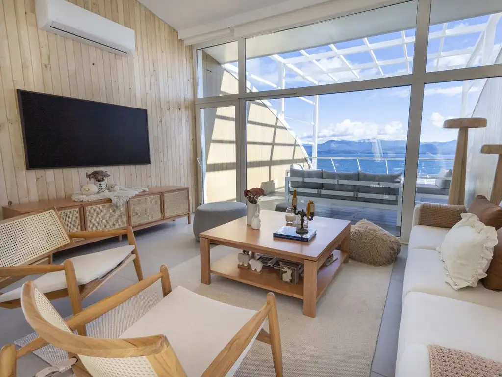 Excelente departamento de 3 dormitorios con vista panorámica al lago Nahuel Huapi. Ubicado en elexclusivo complejo B612, sobre Av. Ezequiel Bustillo y a solo 5 km del centro de Bariloche. Este moderno departamento combina comodidad, diseño de vanguardia y una ubicación privilegiada, ideal para vivir o para pasar unos días de relax. Su cuidada decoración y sus grandes ventanales inundan los ambientes de luz natural y ofrecen una vista imponente al Lago Nahuel Huapi.