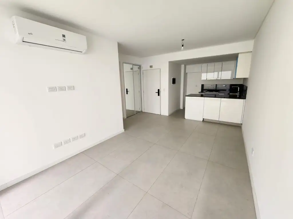 Excelente departamento de tres ambientes al contrafrente con patio. La unidad se destaca por su luminosidad, amplitud y detalles de categoría. Cuenta con un living comedor con cocina integrada y salida al patio, creando un ambiente moderno y funcional. Dispone de dos dormitorios con placares empotrados, uno de ellos con frente espejado e interiores completos. El baño principal es completo, con bañera y revestimientos de primera calidad, y además posee un toilette de recepción con un diseño contemporáneo. Los pisos son símil madera, las aberturas de aluminio negro con doble vidrio y el departamento cuenta con aire acondicionado instalado.