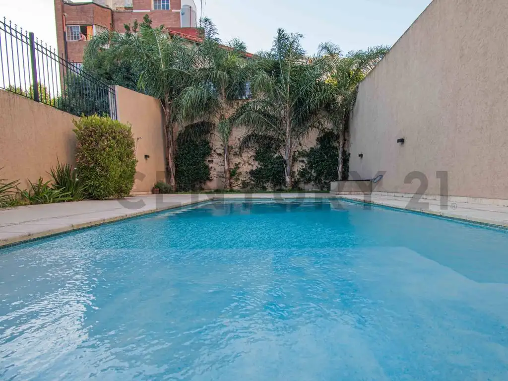 Amenities, terraza con parrillas y solarium. SUM en planta baja, piscina y solarium.