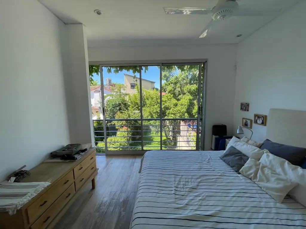 En la planta alta se desarrolla un hall de distribución que organiza un primer dormitorio muy luminoso, un baño completo y un segundo dormitorio que cuenta con una división tipo vestidor/placard, generando un espacio ordenado y bien resuelto.
