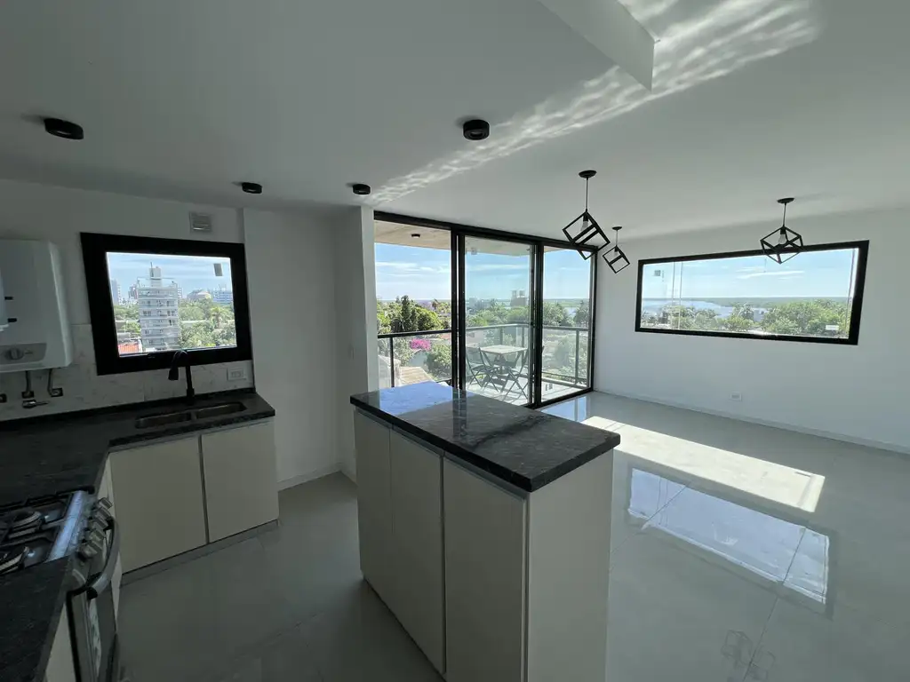 Unidades de 2 dormitorios con placard, cocina living comedor, balcón amplio con parrillero al frente con vista panorámica a la ciudad y el rio, balcón al contra frente, 2 baños, hall de ingreso exclusivo y cocheras en planta baja.