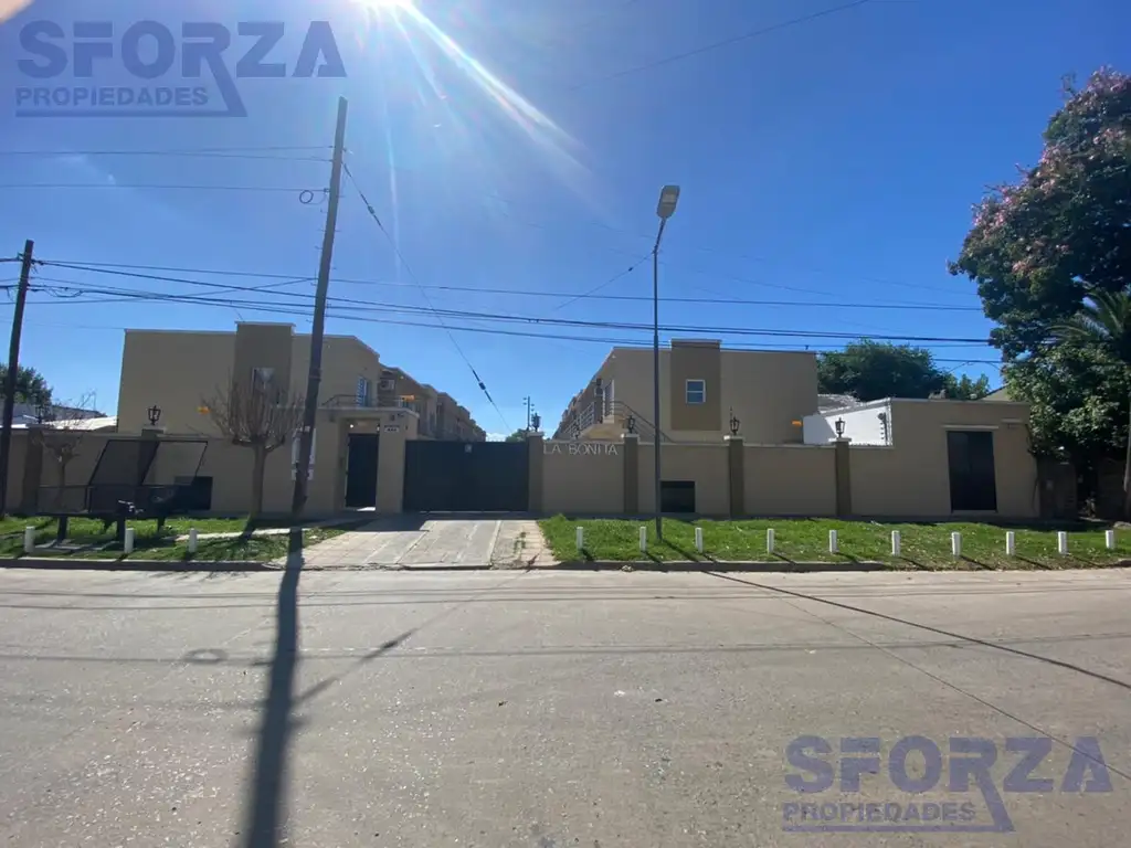 Departamento de tres ambientes en planta alta dentro del complejo cerrado "La Bonita". Cuenta con dos dormitorios, uno de ellos con placard empotrado, cocina integrada, baño completo y living-comedor con buena iluminación natural. Incluye cochera.
