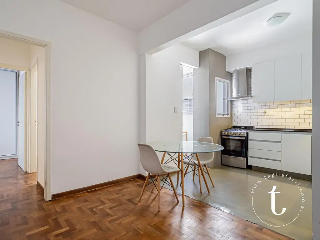 Living comedor con amplia cocina integrada, lavadero separado, baño completo con ventilación, dormitorio principal y dormitorio secundario. La unidad cuenta con baulera en el sótano.