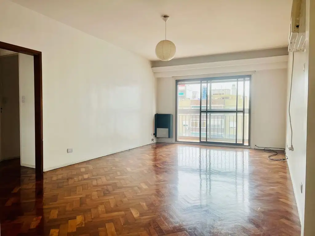 Living super amplio y luminoso con salida al balcón hacia el contrafrente y vista abierta.