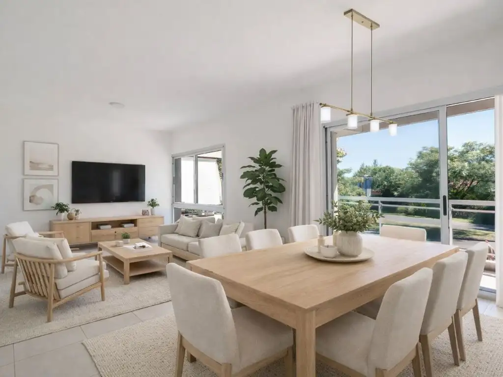 El living comedor es amplio y muy luminoso, con salida a un gran balcón aterrazado con parrilla y vista abierta a espacios verdes. Ideal para disfrutar todo el año.