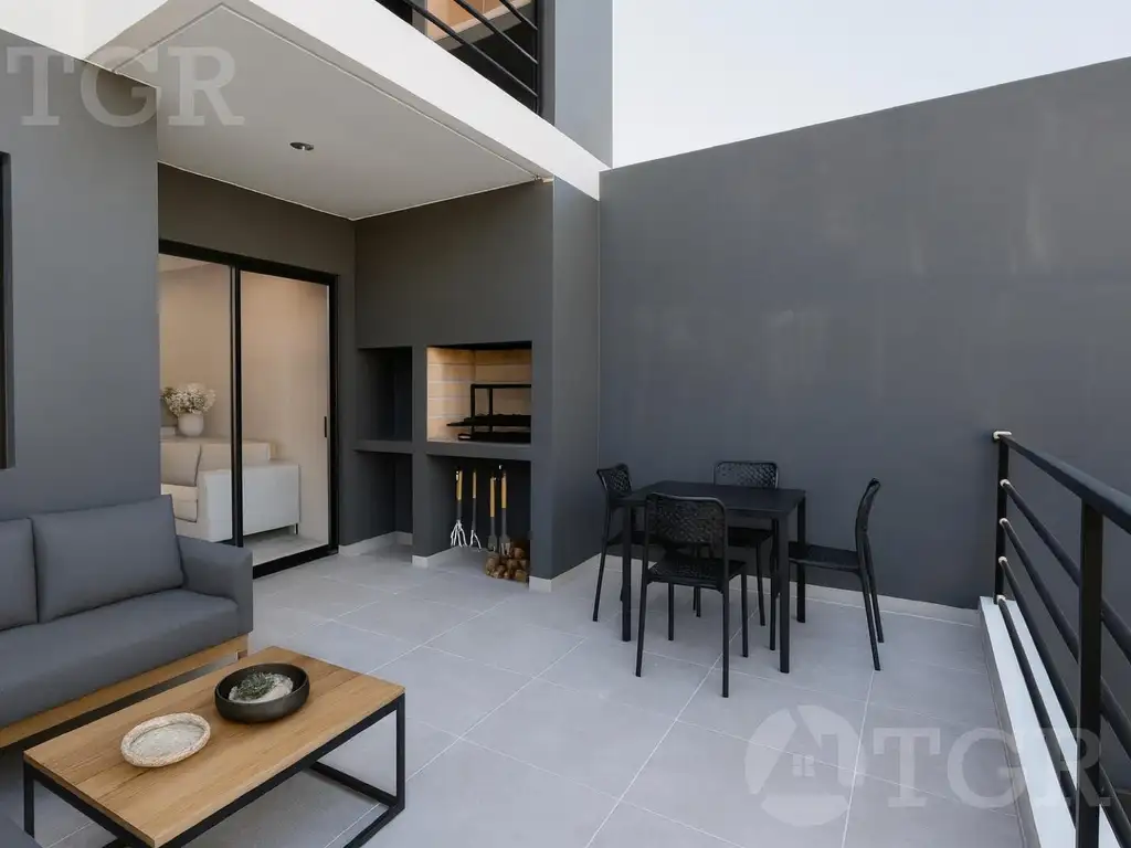 Las unidades de 3 ambientes constan de un living comedor, cocina (a gas) semi integrada y baño completo con bañera, habitacion con placard y habitación principal con vestidor y baño en suite. También cuenta con balcón terraza con parrilla propia.