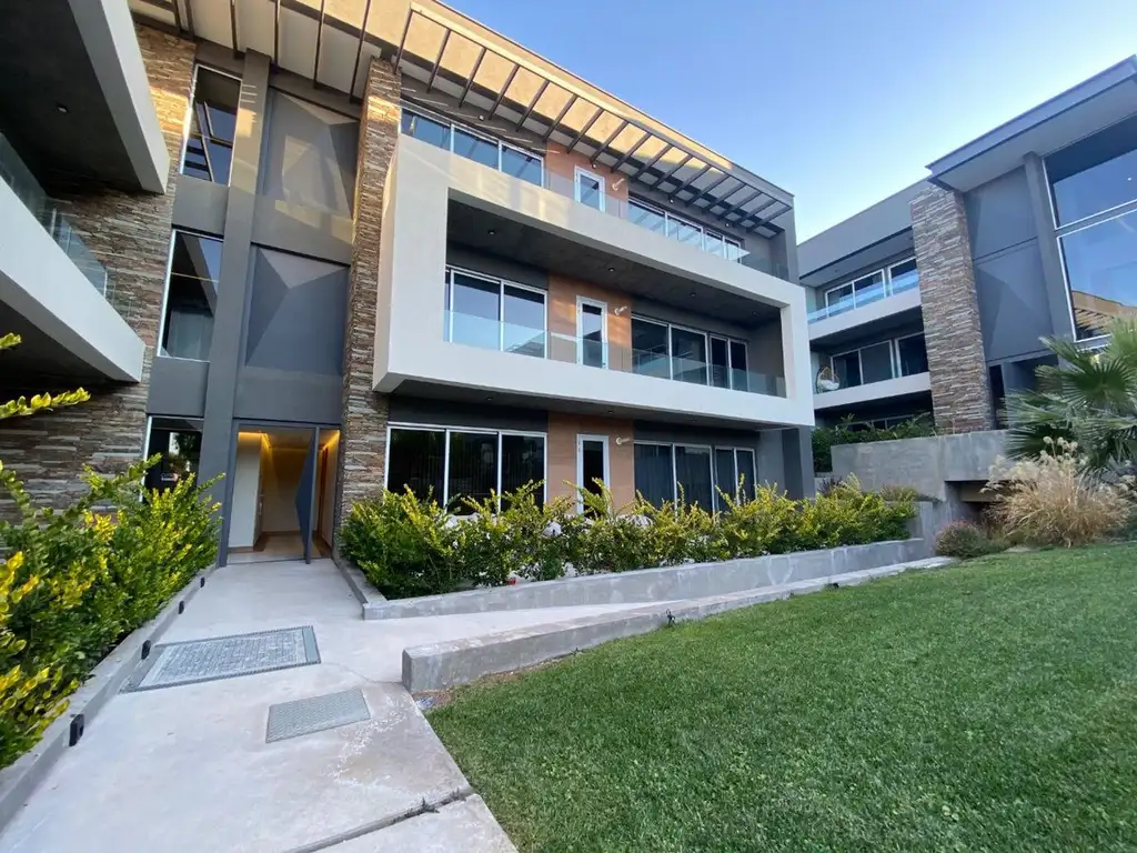 Todo el Complejo se destaca por sus detalles y terminaciones de primera calidad, tanto en los espacios exteriores como en los interiores. La Cocina está equipada con cocina, extractor y pileta doble. El Estar Comedor tiene puertas ventana hacia el balcón. Los Dormitorios tienen placares generosos con puertas corredizas. Las ventanas dan al norte, lo cual permite una iluminación espectacular y un excelente asoleamiento en invierno. Los baños poseen muebles bajo mesada, bacha de apoyar, espejo y mampara de vidrio. Todo el departamento está revestido con pisos de porcellanato y zócalos de madera.