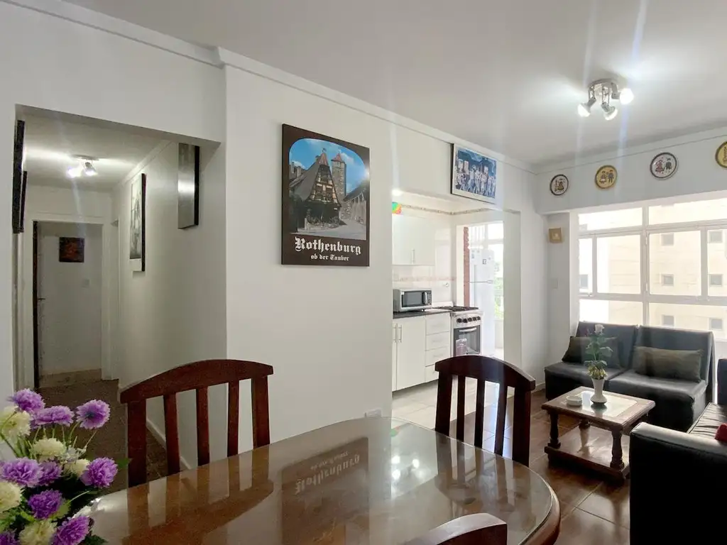Ubicado en el segundo piso, cuenta con un amplio living comedor con salida al balcón, cocina integrada con conexión para lavarropas y termotanque, baño completo de recepción, dormitorio con placard y baulera, y una habitación en suite con vestidor, baño completo y salida al balcón. Cochera fija N.o 10 se accede por ascensor y portón automático.